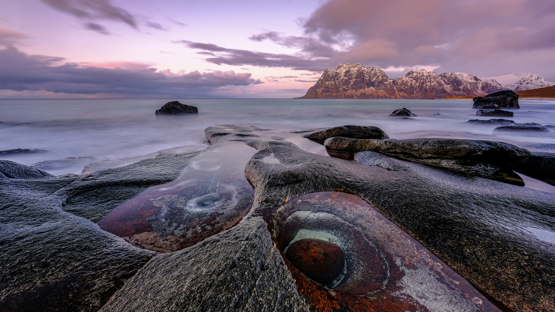 La formación rocosa “Ojo del Dragón” en la playa de Uttakleiv, Noruega (© reisegraf/Getty Images)(Bing España)