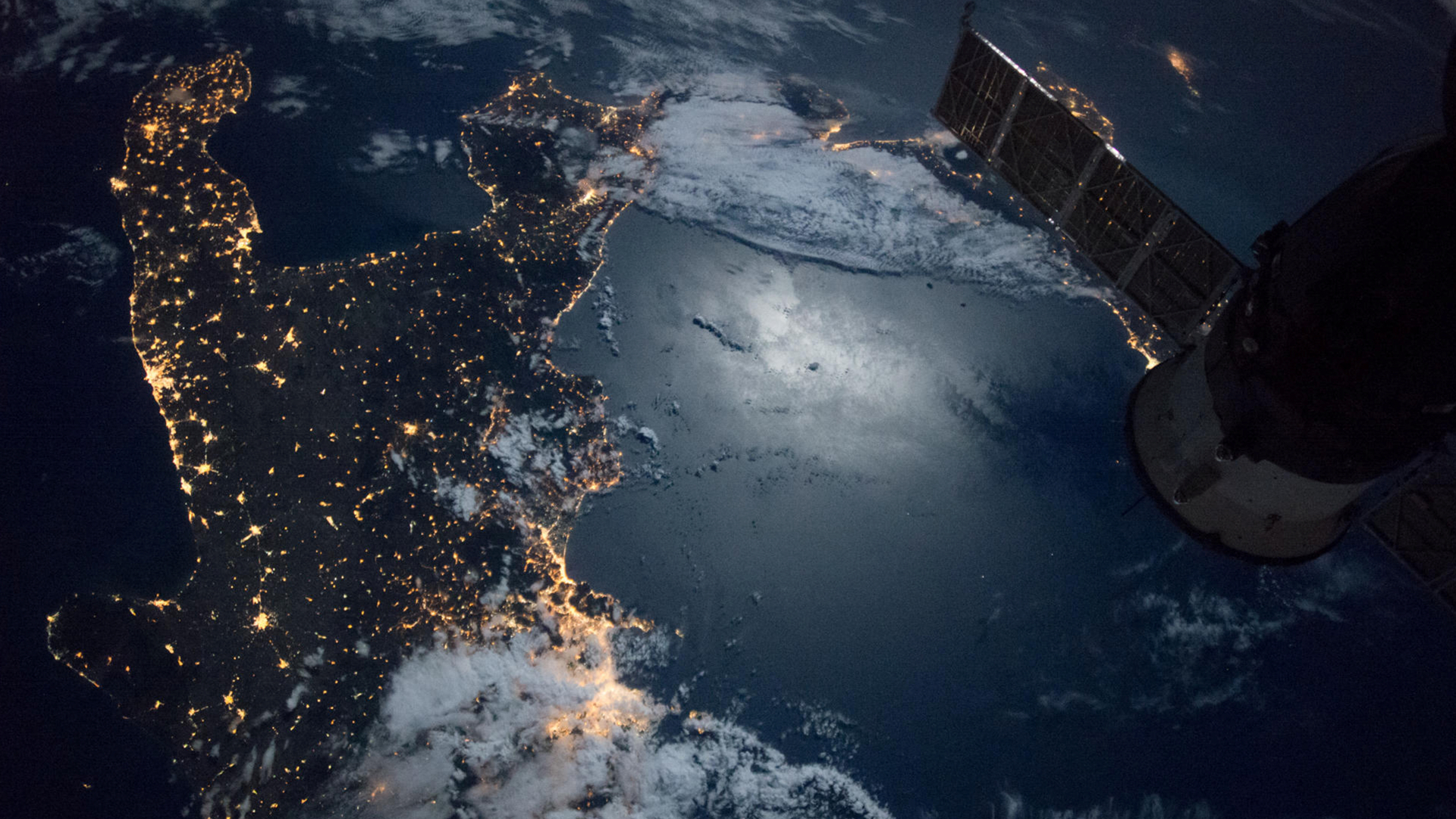 Volo della Stazione Spaziale sopra la punta meridionale dell'Italia (© NG Images/Alamy)(Bing Italia)